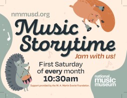 Jam with us at the National Music Museum! Bring your little ones to Music Storytime on the first Saturday of each month at 10:30 a.m. for fun, music-filled storytelling led by Museum Educator Anna Van Kley. Designed for ages 3–6, this free monthly program invites children to explore rhythm, melody, and imagination—sponsored by the M.A. Martin Everist Foundation.
