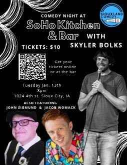 Siouxland Comedy returns to SoHo Kitchen and Bar for a great night of laughter! come early to enjoy a fabulous dinner before the show!