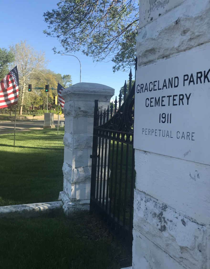 This is my father's flag that is located in the row of flags in the front row of Graceland Park Cemetery that is located on Lakeport Avenue in the neighborhood of Morningside that is located in Sioux City, Iowa . . . that is located in the United States of America.