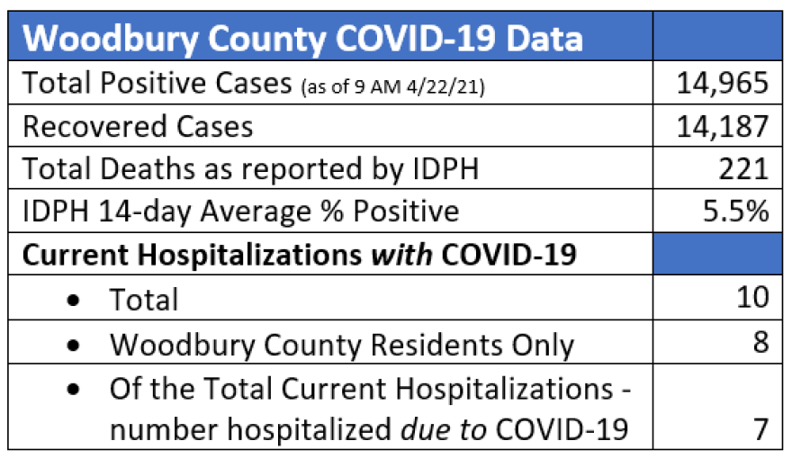 Yesterday marked the one-year anniversary of the first death related to COVID-19 in Woodbury County. A post on the Siouxland District Health’s Facebook page remembered the 221 residents of the county who have lost their lives in the past year.